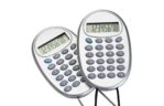 Calculadora plástica oval de 8 dígitos prata com cordão e acessórios coloridos, necessita de 1 bateria AG10 para funcionamento(acompanha). Tamanho total aproximado (CxL): 9,9 cm x 6,2 cm Peso aproximado (g): 28
