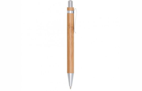 Caneta Ecológica de Bambu com detalhes prata. Clip de metal, aciona por clique. Altura : 13,5 cm Largura : 1,6 cm Peso aproximado (g): 11