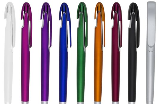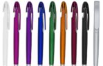 Caneta plástica inteira colorida com detalhes em prata. Possui um clip com design espaçoso ideal para gravação, aciona por clique. Tamanho total aproximado (CxL): 14,1 cm x 1,5 cm Peso aproximado (g): 11