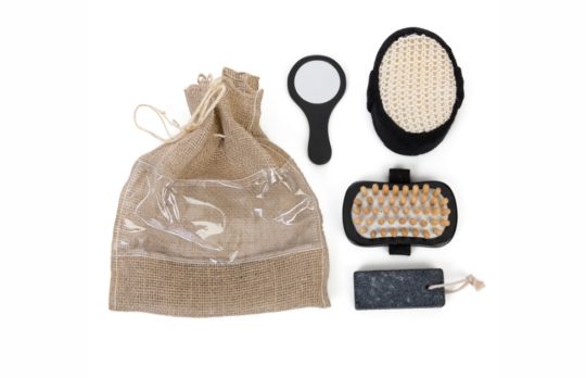 Kit banho ecológico 4 peças, embalagem saco de Juta com visor plástico. Possui esponja para banho com alça, espelho de madeira, pedra pome com alça de cordão e bucha massageadora com alça. OBS.: PEDIDO MÍNIMO 10 PEÇAS! Tamanho total aproximado (CxL): Embalagem 32 cm x 26 cm – Esponja 15 cm x 11,5 cm x […]