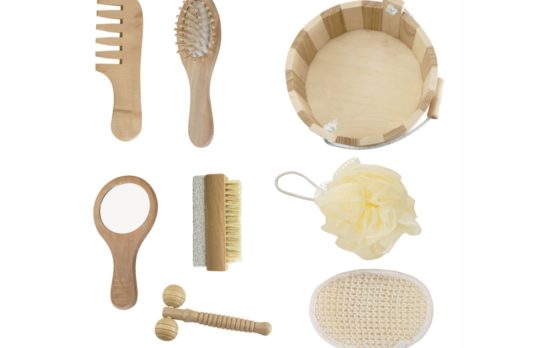 Kit banho de madeira com 7 peças. Possui: espelho, escova de cabelo, esponja de banho, bucha de banho, massageador, pente e escova com pedra pomes. Acompanha balde com alça e pegador de madeira. OBS.: PEDIDO MÍNIMO 10 PEÇAS! Tamanho total aproximado (CxL): Espelho 14,6 cm x 7 cm – Escova 16 cm x 4,9 cm – […]