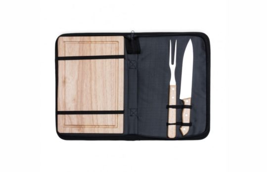 Kit churrasco 3 peças em estojo de nylon com alça. Possui tábua de madeira com canaleta, garfo e faca. Acompanha proteções plásticas e parte interna com elástico para fixar as peças. Altura : 36,5 cm Largura : 25 cm Tamanho total aproximado (CxL): Garfo 33,1 cm x 2,5 cm – Faca 33 cm x 3,9 cm Peso […]