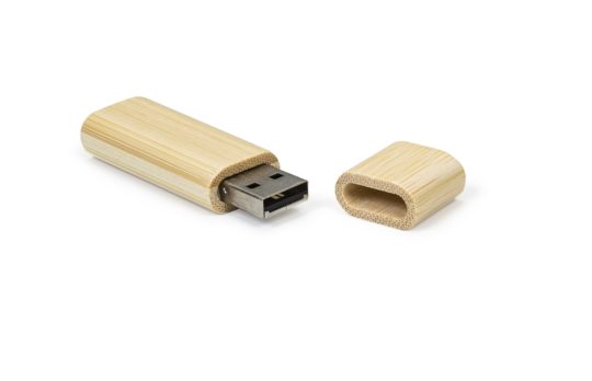 Pen drive de bambu 4gb, formato retangular porém as pontas e laterais são arredondadas. Tampa com imã. Tamanho total aproximado (CxL): 6 cm 1,8 cm Peso aproximado (g): 9